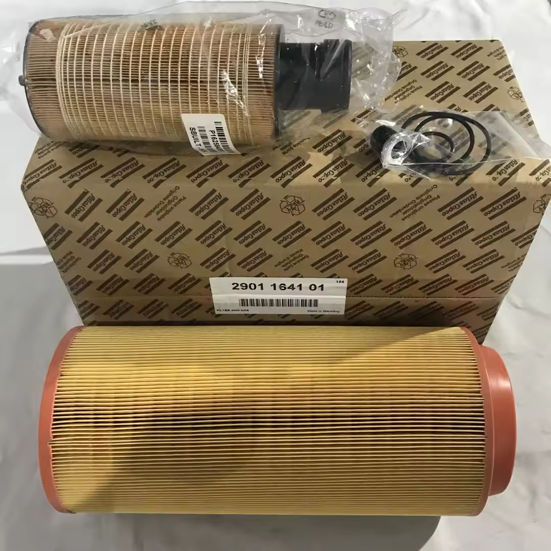 Filtración de admisión de Atlas Copco: intercepta eficientemente el polvo, las partículas de arena y las fibras en el aire, reduciendo los contaminantes que ingresan a la unidad principal y reducen el desgaste abrasivo en componentes de precisión como rotores y cojinetes.